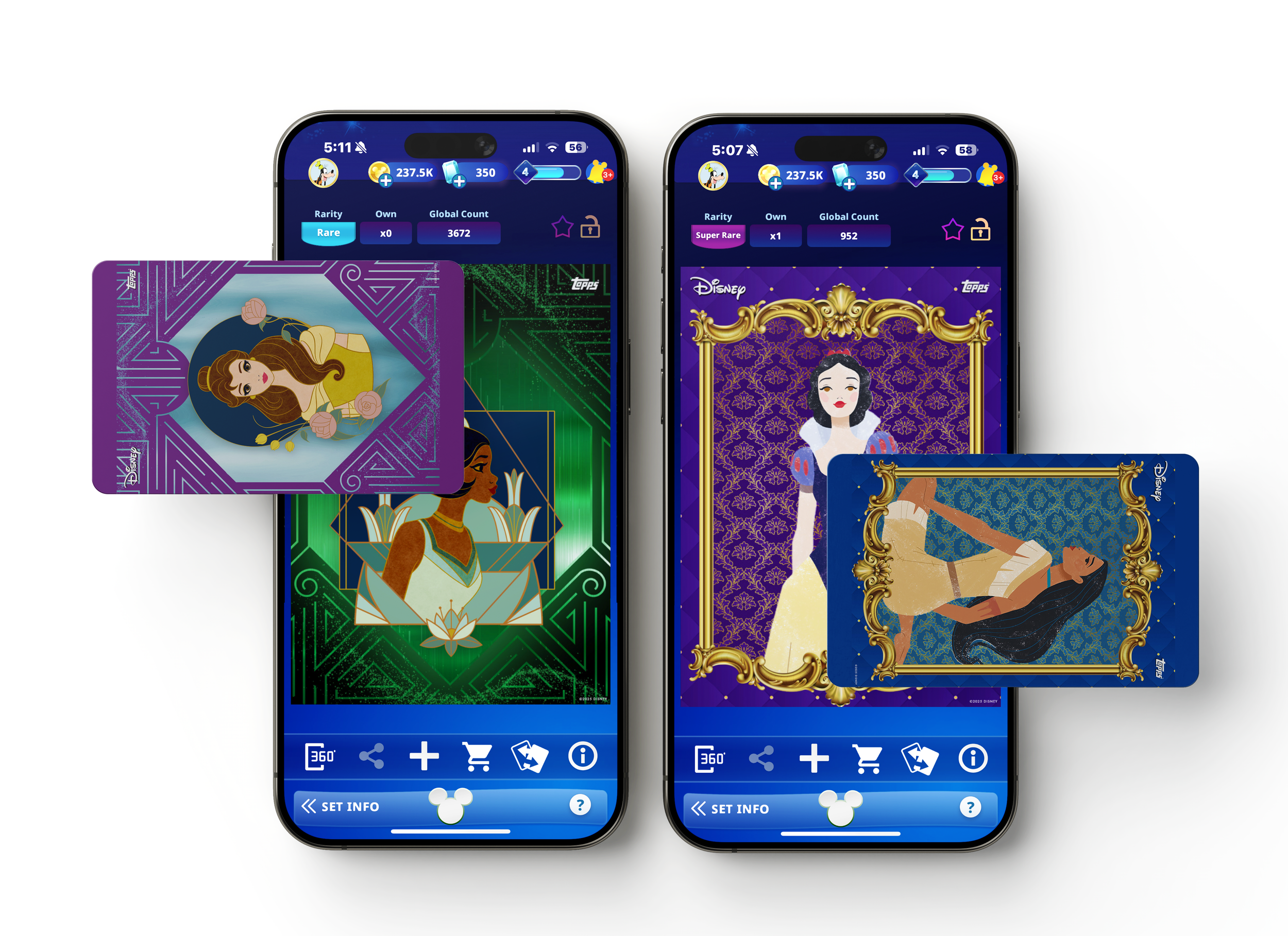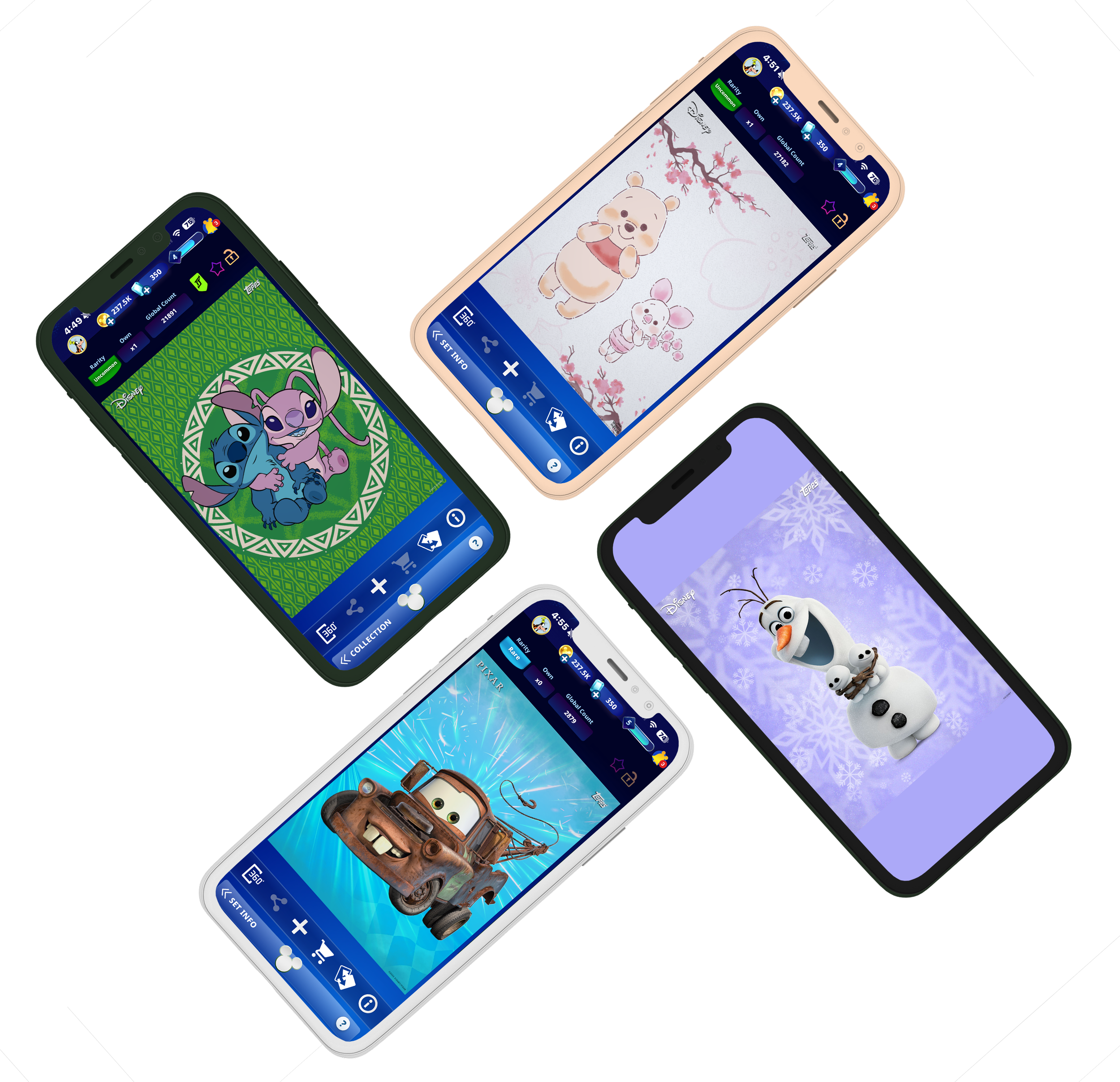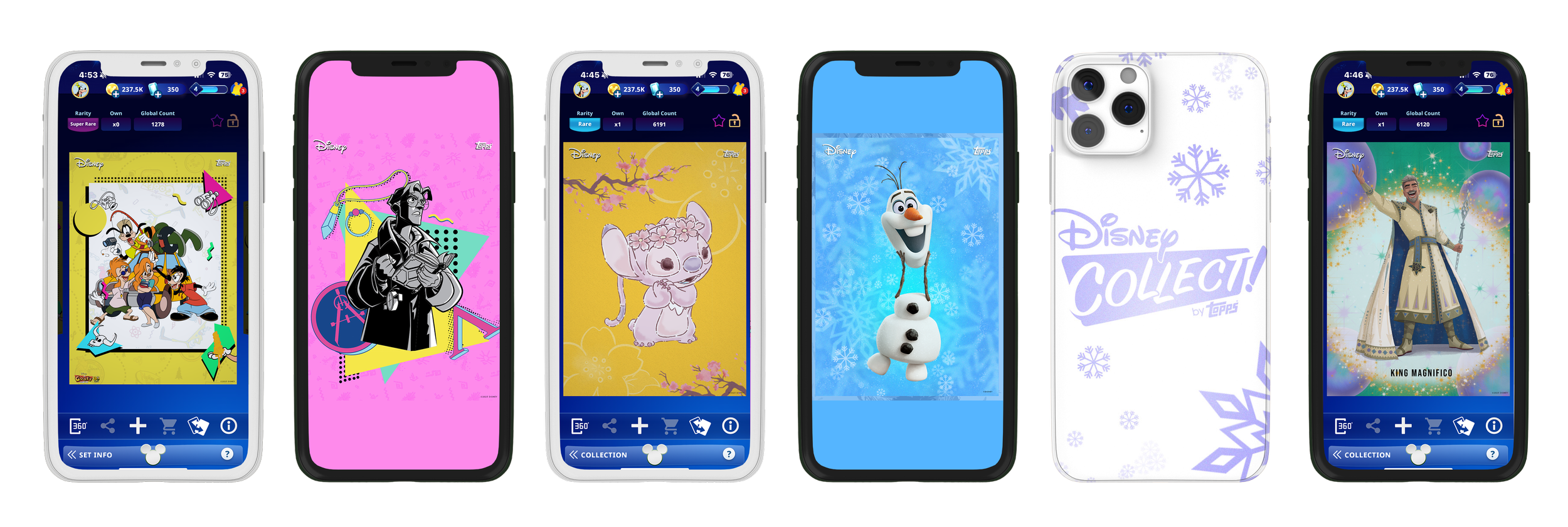 Starting in January of 2025 my work with Disney Collect has consisted of designing digital collector cards that are published on the Disney Collect app. Fans and collectors buy packs with randomized cards as they try to collect complete sets. Working closely with the Senior Content Designer it is my job to design cards that dazzle in the eyes of Disney fans and collectors.